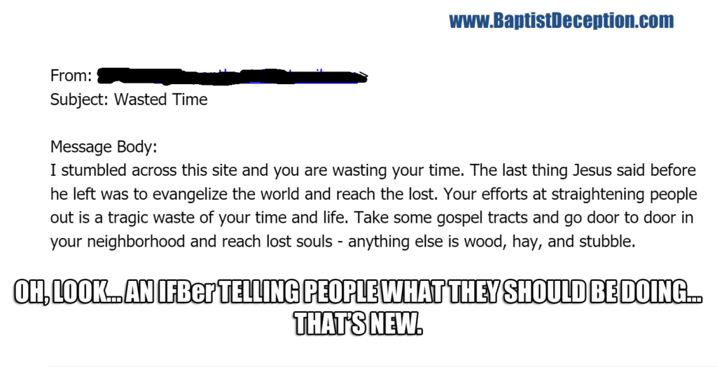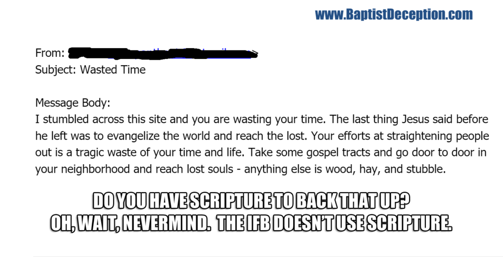 As I’ve said before, I get many emails from IFBers who want to verbally attack me for this website. I’ve grown accustom to them so I mostly just ignore them. I got one a few days ago though and thought I’d have a little fun. If you have ideas for other means please post them in the comments section below and I will create them. I hope you enjoy.